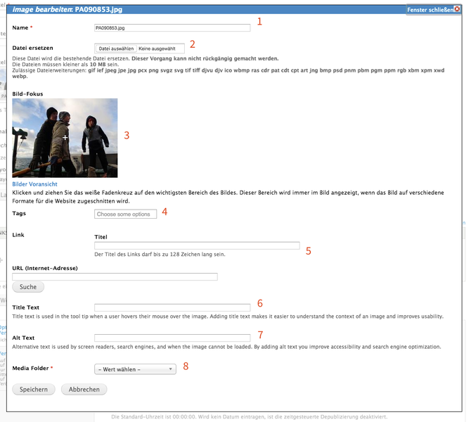 4. Tags: Vergeben Sie hier Schlagworte, um die Datei später einfacher im Medien-Archiv wieder zu finden.